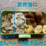 友達からおみやげに大量のせんべいをもらいました。もちろん普通に食べましたが、何かもっと楽しくワクワクする食べ方はないかな?と思い炊き込みご飯にすることにしました。味付けの必要がほとんど無くておいしかったです。
