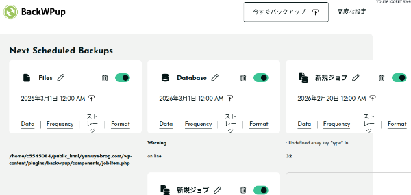 なんてあいまいな気持ちでBackWPupを開いてみましたが・・・。