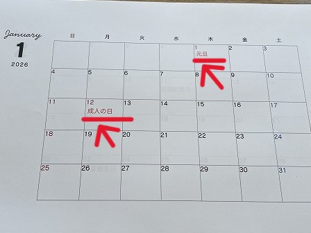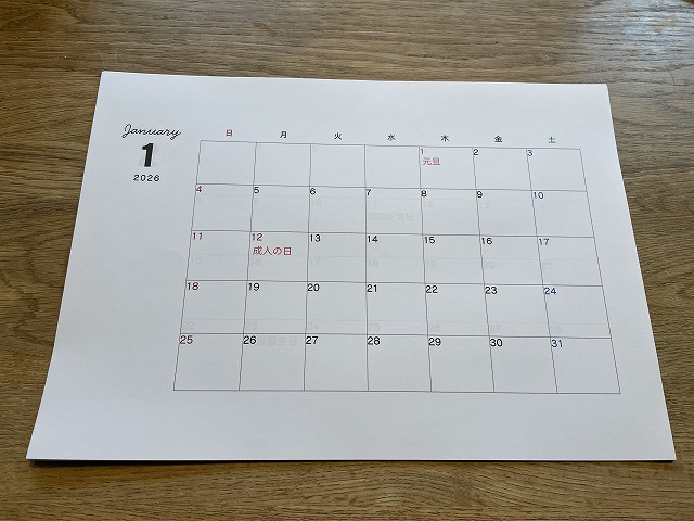 昨年の失敗を活かして、2026年カレンダーはCanvaで祝日を入力しました。