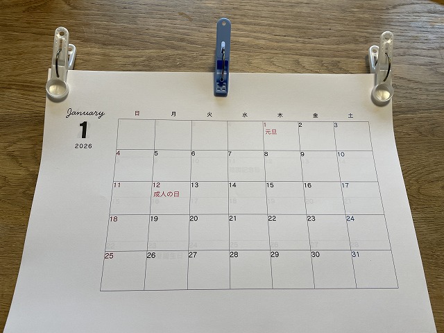 追記 2026年カレンダー作成