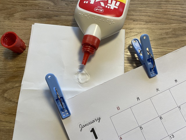 厚紙を一番最後にしてきれいに重ねてカレンダーを貼るようにします。