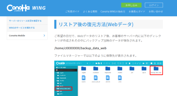 - レンタルサーバーConohaWingでバックアップデータをリストア化操作
