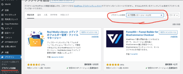 こちらの画面右上からプラグイン名を検索して同じものが出てこなかったり