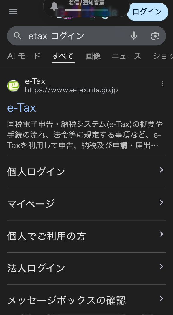 etaxログインで検索。