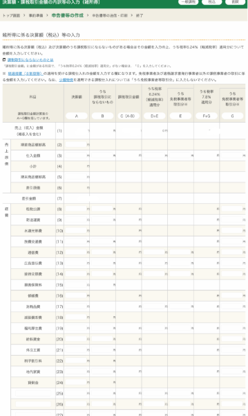 決算額・課税取引金額の内訳等の入力