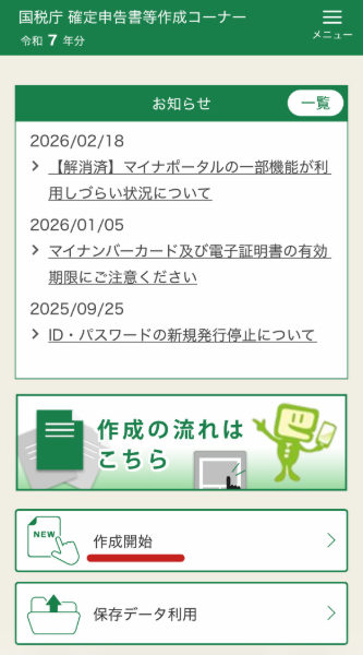 2025年度の確定申告は2026年2月17日以降実施でした。