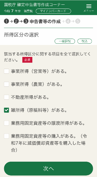 所得区分の選択 雑所得です