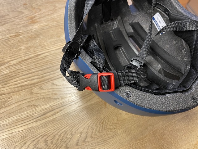 あご紐の長さを細かく設定できるため、段差などの衝撃でもヘルメットがズレる心配がありません。