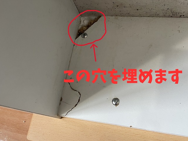 カラーボックスなんかに穴があいた時の修理 自作パテで埋める