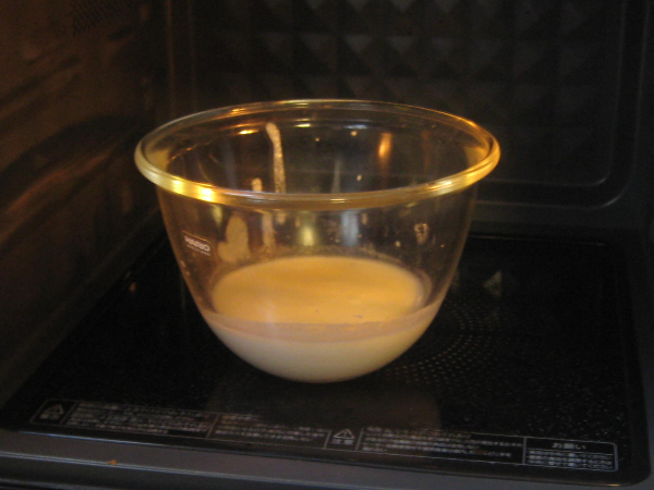- 牛乳を全部入れたら電子レンジで1分加熱して混ぜてを繰り返す