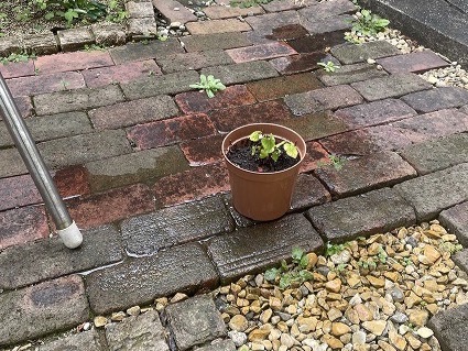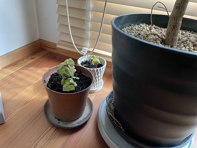 コバエが発生したので外に出されたさつまいもの鉢植え。