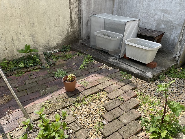 庭の雑草たちが育ち始めているので植え替えることにしました。