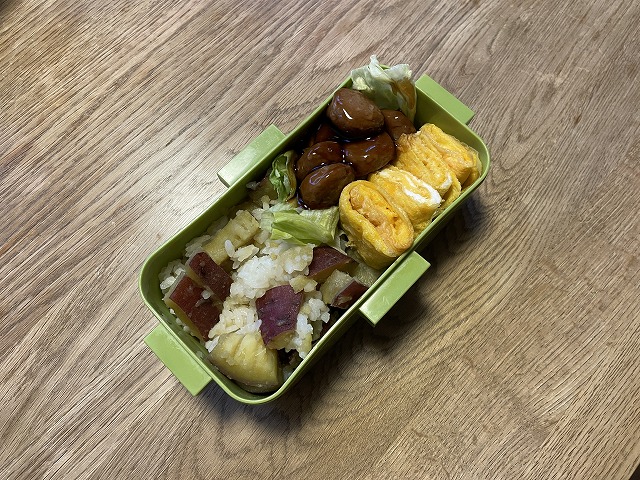 始めはふかしたさつまいもをご飯に混ぜてお弁当に持っていってました。